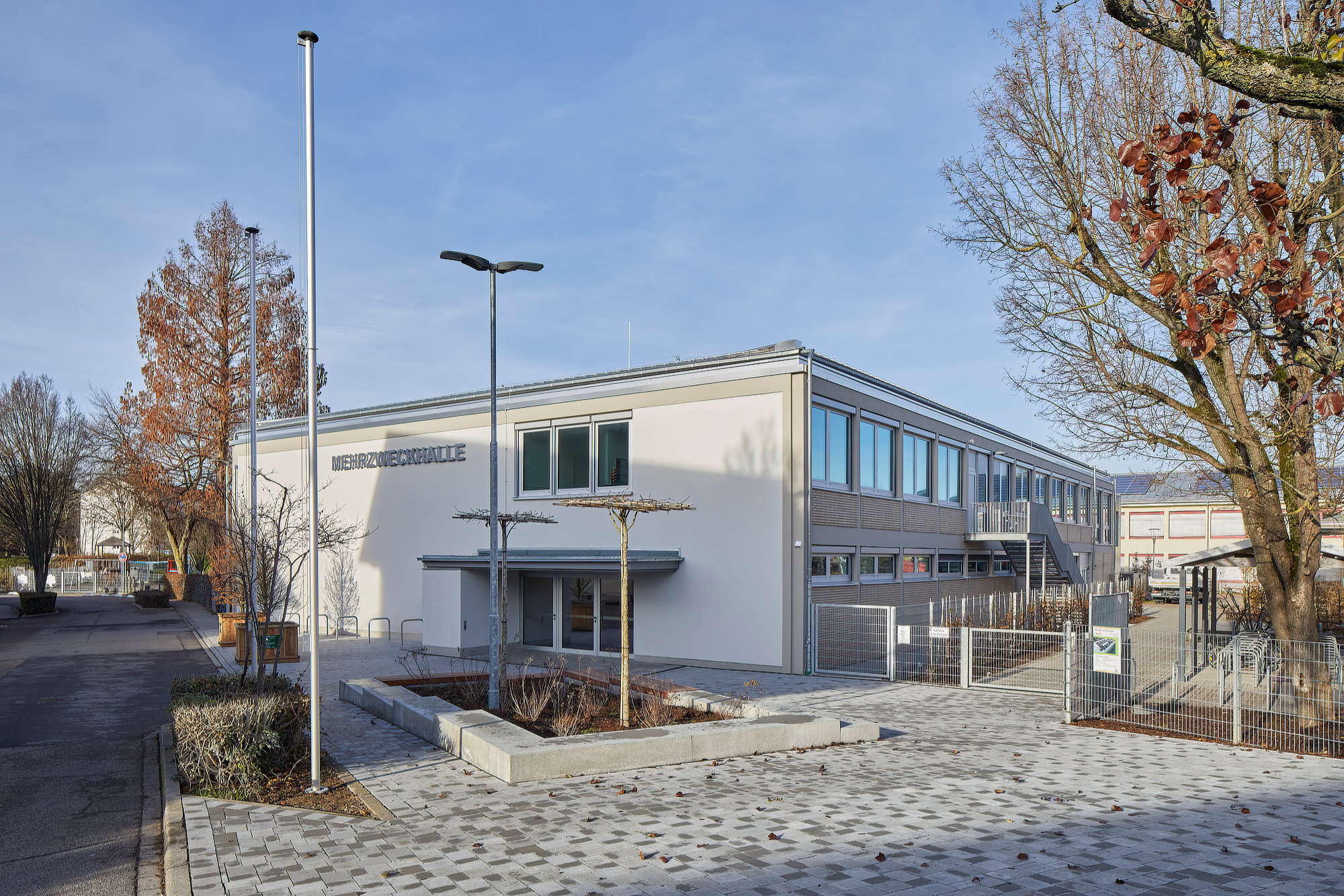 Mit der Fertigstellung der Sanierung und Erweiterung der Mehrzweckhalle in Ilvesheim erhält die Gemeinde ein zeitgemäßes Ensemble aus Mehrzweckhalle und Multifunktionsgebäude, das bestehende Strukturen weiterdenkt und neue Nutzungen integriert. Ziel des Projekts war es, den bauzeitlichen Charakter der Halle zu bewahren und zugleich funktional, energetisch und räumlich auf heutige und zukünftige Anforderungen auszurichten.
